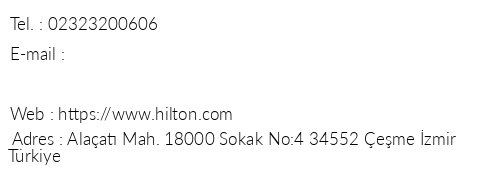 Doubletree By Hilton Çeşme Alaçatı Beach Resort iletişim bilgileri, booking, adres bilgileri, web site ve mail adresi, resimleri, haritası, yol tarifi, nasıl gidilir, erken rezervasyon fiyatları bilgilendirme amaçlı olup, değişiklik arz edebilir. Yanlışlıklardan dolayı Oteliletisim.com sorumlu tutulamaz.