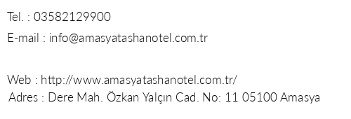 Amasya Taşhan Hotel iletişim bilgileri, booking, adres bilgileri, web site ve mail adresi, resimleri, haritası, yol tarifi, nasıl gidilir, erken rezervasyon fiyatları bilgilendirme amaçlı olup, değişiklik arz edebilir. Yanlışlıklardan dolayı Oteliletisim.com sorumlu tutulamaz.