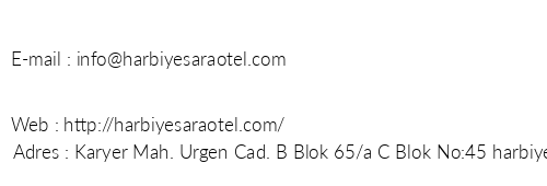Harbiye Sara Hotel iletişim bilgileri, booking, adres bilgileri, web site ve mail adresi, resimleri, haritası, yol tarifi, nasıl gidilir, erken rezervasyon fiyatları bilgilendirme amaçlı olup, değişiklik arz edebilir. Yanlışlıklardan dolayı Oteliletisim.com sorumlu tutulamaz.