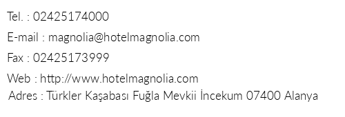 Magnolia Hotel iletişim bilgileri, booking, adres bilgileri, web site ve mail adresi, resimleri, haritası, yol tarifi, nasıl gidilir, erken rezervasyon fiyatları bilgilendirme amaçlı olup, değişiklik arz edebilir. Yanlışlıklardan dolayı Oteliletisim.com sorumlu tutulamaz.