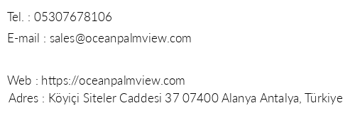 Ocean Palm View iletişim bilgileri, booking, adres bilgileri, web site ve mail adresi, resimleri, haritası, yol tarifi, nasıl gidilir, erken rezervasyon fiyatları bilgilendirme amaçlı olup, değişiklik arz edebilir. Yanlışlıklardan dolayı Oteliletisim.com sorumlu tutulamaz.