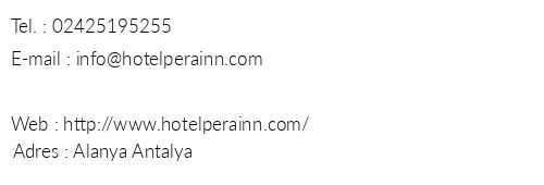 Pera İnn Hotel iletişim bilgileri, booking, adres bilgileri, web site ve mail adresi, resimleri, haritası, yol tarifi, nasıl gidilir, erken rezervasyon fiyatları bilgilendirme amaçlı olup, değişiklik arz edebilir. Yanlışlıklardan dolayı Oteliletisim.com sorumlu tutulamaz.