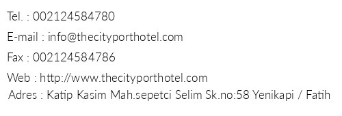 The City Port Hotel iletişim bilgileri, booking, adres bilgileri, web site ve mail adresi, resimleri, haritası, yol tarifi, nasıl gidilir, erken rezervasyon fiyatları bilgilendirme amaçlı olup, değişiklik arz edebilir. Yanlışlıklardan dolayı Oteliletisim.com sorumlu tutulamaz.